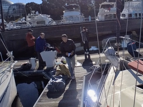 まずは、東京夢の島マリーナにある野外ステージの上で、ライジャケを持って記念撮影。本メールに2枚写真を添付させていただいています。