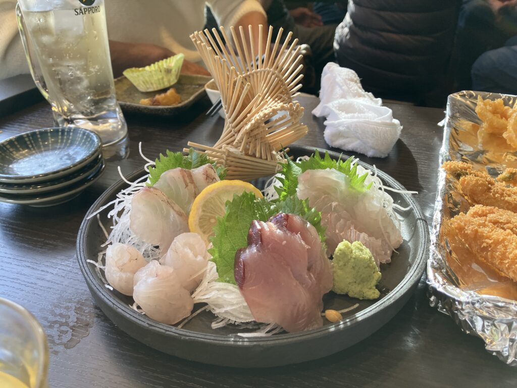 いくらなんでも、それはだめだろうと思っていたのですが、結果的に、なんと、お店の職人さんが切って盛り付けして、無料でだしてくれました。児玉さんの釣りたてのヒラメは、相変わらず極上の味でした。