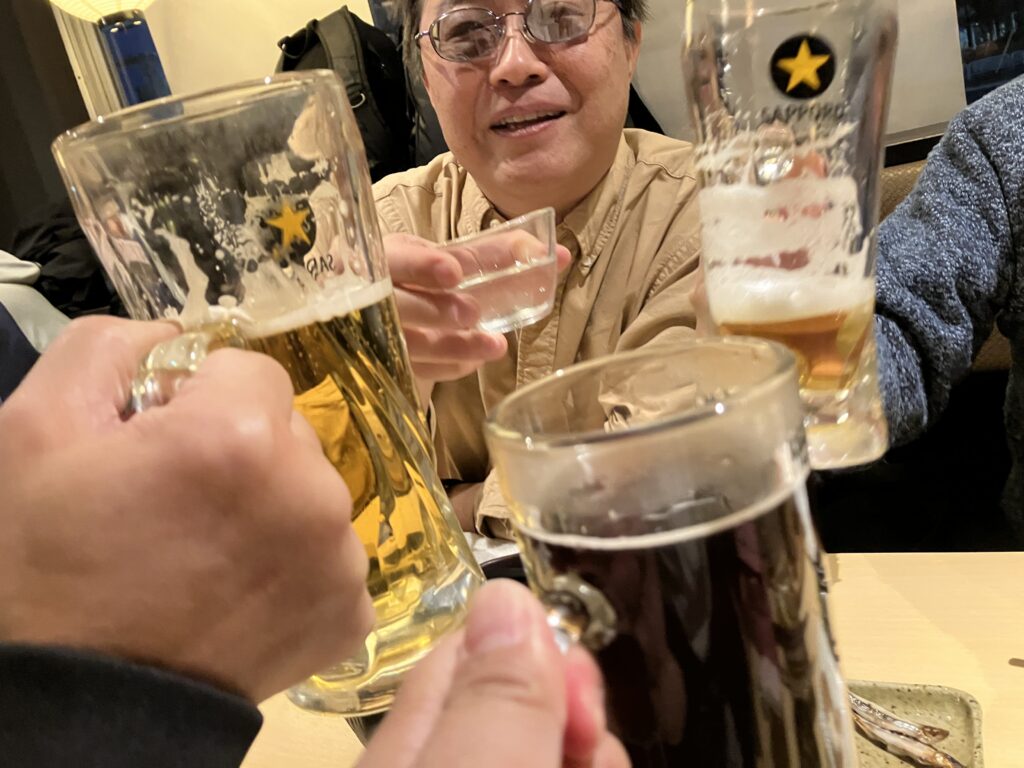 アフターセーリングはいつものひもの屋で乾杯! きょうはえらい混んでいるなぁなんていいながら入店し、時間を見て納得。普段であれば16時代に飲み始めるのですが、この日は17時をとっくに過ぎていました。それだけ熱心に練習したのか。誰かさんのせいであらぬ方向へ行き帰りに時間がかかったのか。まあ、ともかく充実し自分的にはあまり長く感じないセーリングでした。