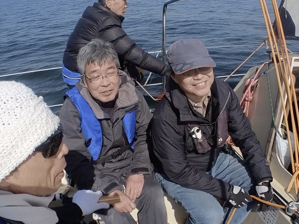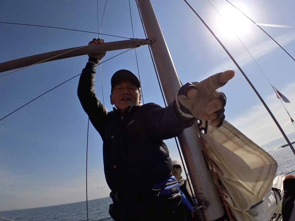 少し風が上がりスピンをおろし 上り、タックの練習、児玉さんの艇の前で私のタックの変な動きを披露。
