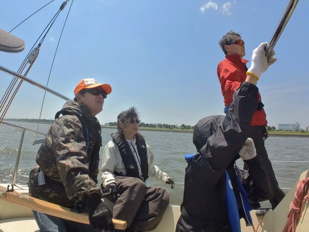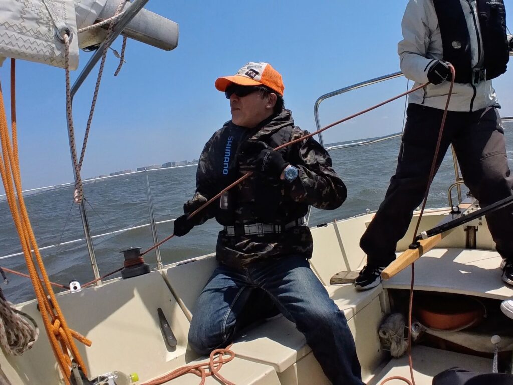 あほうどりも加速したまま、9ノットは出てたと思います。難しいティラー操作の中、体験者さんが手を添えてティラーの感覚を味わっていました。風と波の強さ、とても参考になります。