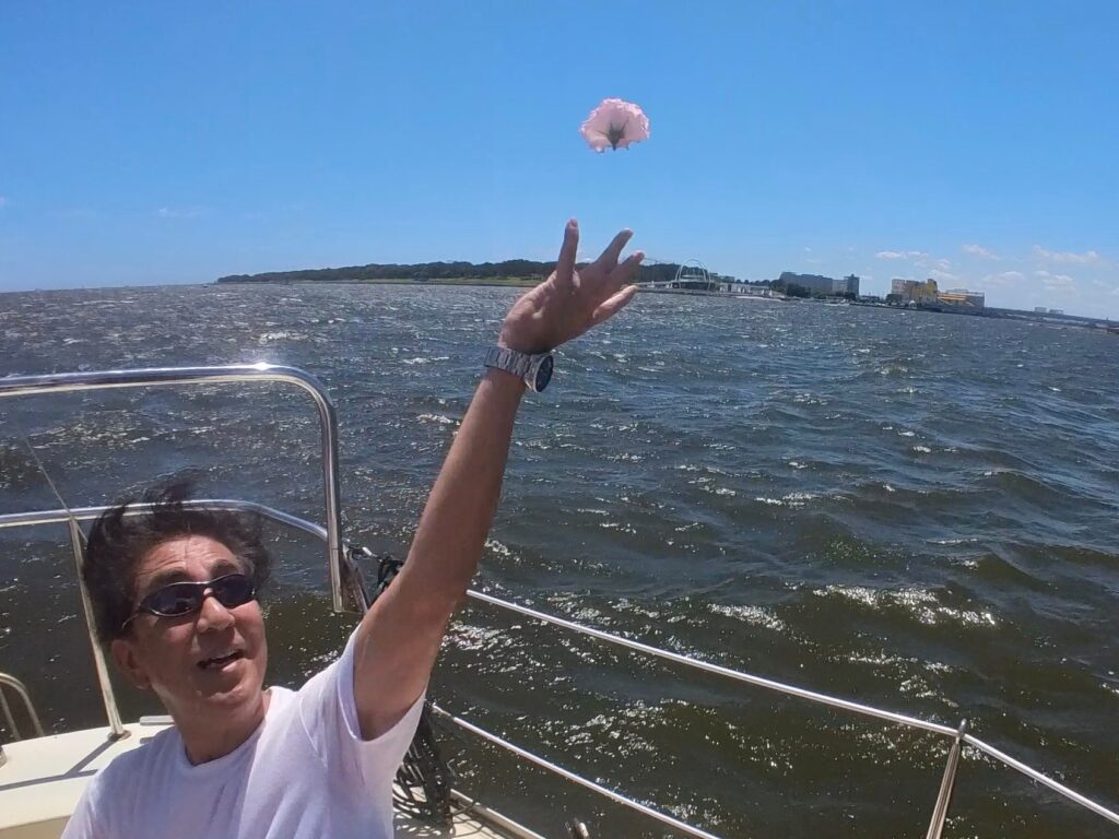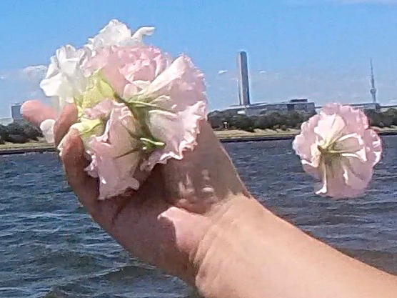 みんなの大きな声が、裕次郎の曲とともに、風にのっって、たくさんの白い花が次々ととんでいき、海面に着水して、流れ、そして去っていった。
