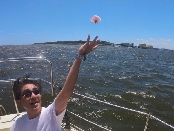 風が強めで残念ながら体験者さんには操船していただけなかった。