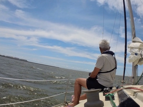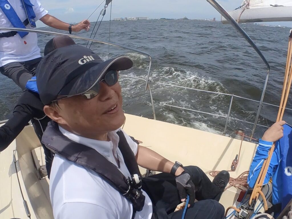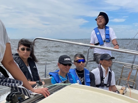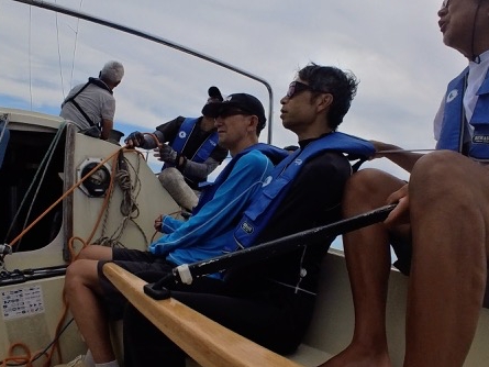 しかし、デッキでの村上さんの動きはいつもすごく俊敏で、さすがすごい経歴の持ち主と尊敬。次回は、村上さんに、ブラインドヘルムスへのガイドをおこなうサイテッドスキッパーを体験していただきたいと個人的には思っている。