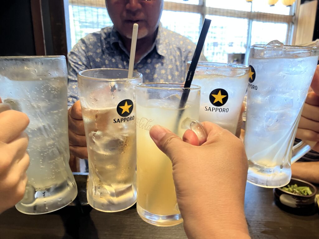 もちろん、実際には、すぐにひろって、船上での黒霧島や、ひものやでのサワーのグラスを持つための余力は残しつつ、コントロール。