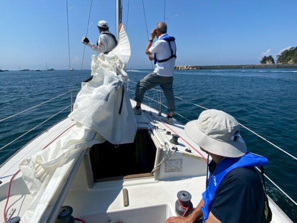 つぶて島周遊を楽しみました。少し雲のかかった陽ざしで、予想よりは風がある快適なセイーリングとなりました。