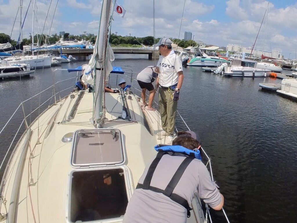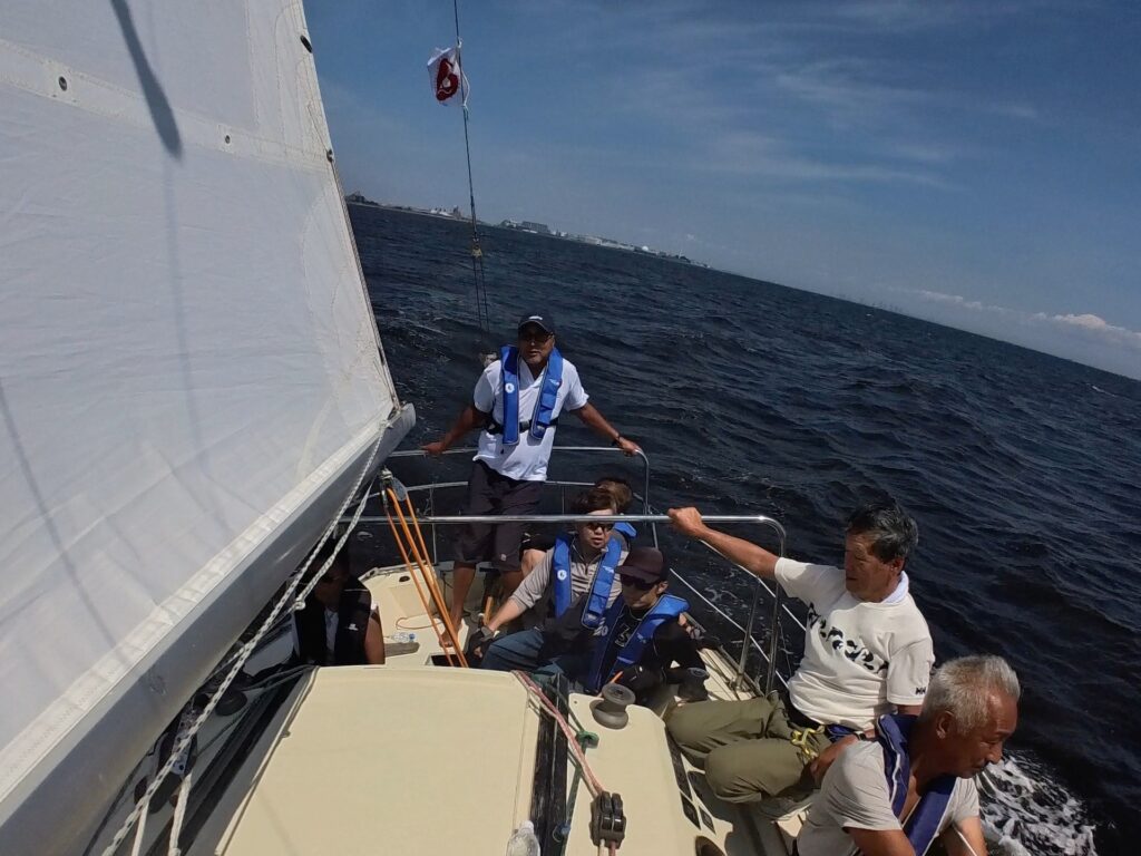 活動のようす: わたしにとっては、「一週間に二度もセーリングに出かける」という初めての体験でした。当日のコンディションは風がそれなりにある・・・。いや、ちょっと強すぎるかもしれないという状況でした。今回はブラインドの体験者さん1名を加え8名での出航となりました。