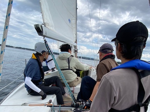 早飯でマリーナに戻り、再度出港すると、徐々に風が上がって絶好のセーリング練習日和、