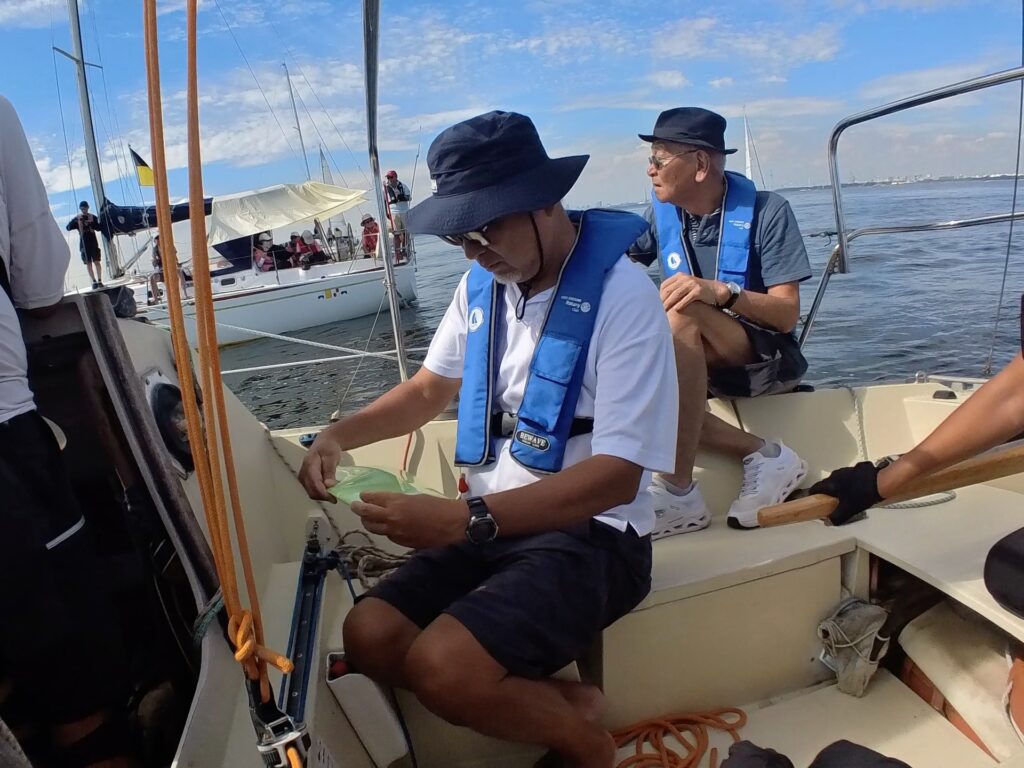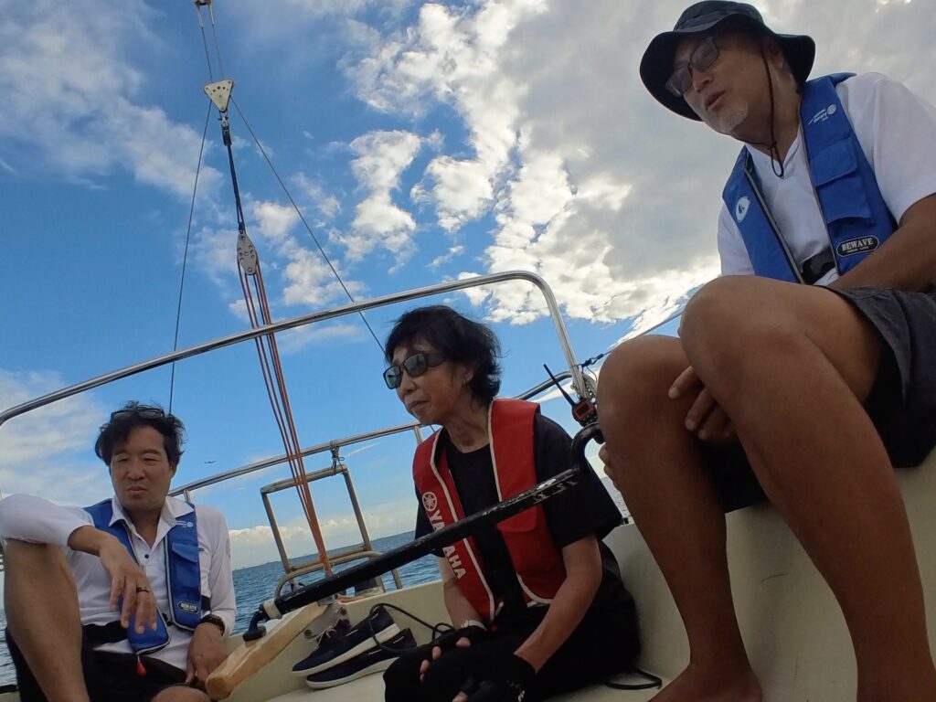 バウマンは島津さん、ピットは賀来さん。そえださんはジブトリマーとスピントリムなど色々、ヘルムスはブラインド小倉さん、メイントリマーはブラインドとのがいち。という役割分担でした。