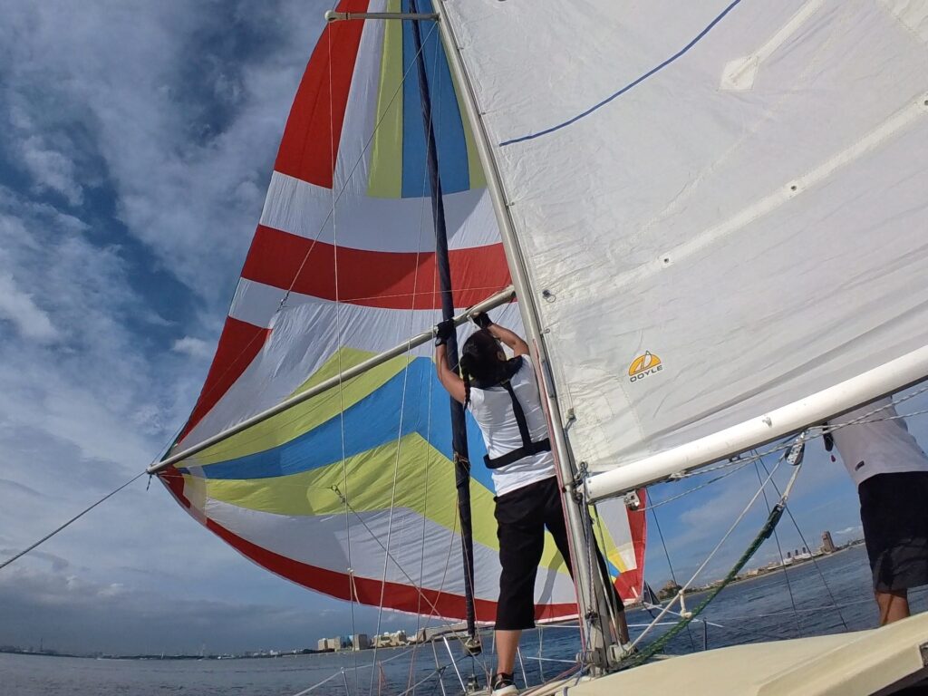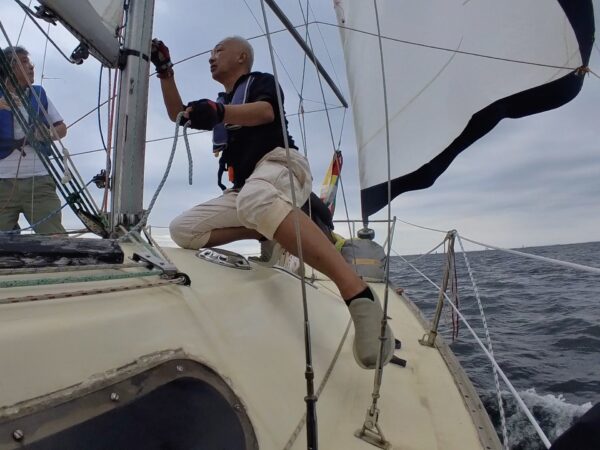 サイテッドスキッパーは堀江さん、児玉さんはさまざまなクルーワークを身軽にこなされながらスキッパーサポートも。