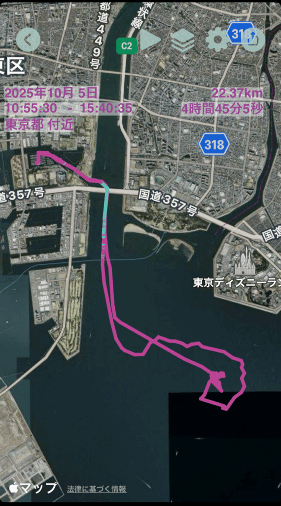 航行情報:距離:22.37キロメートル 航行時間:4時間45分
