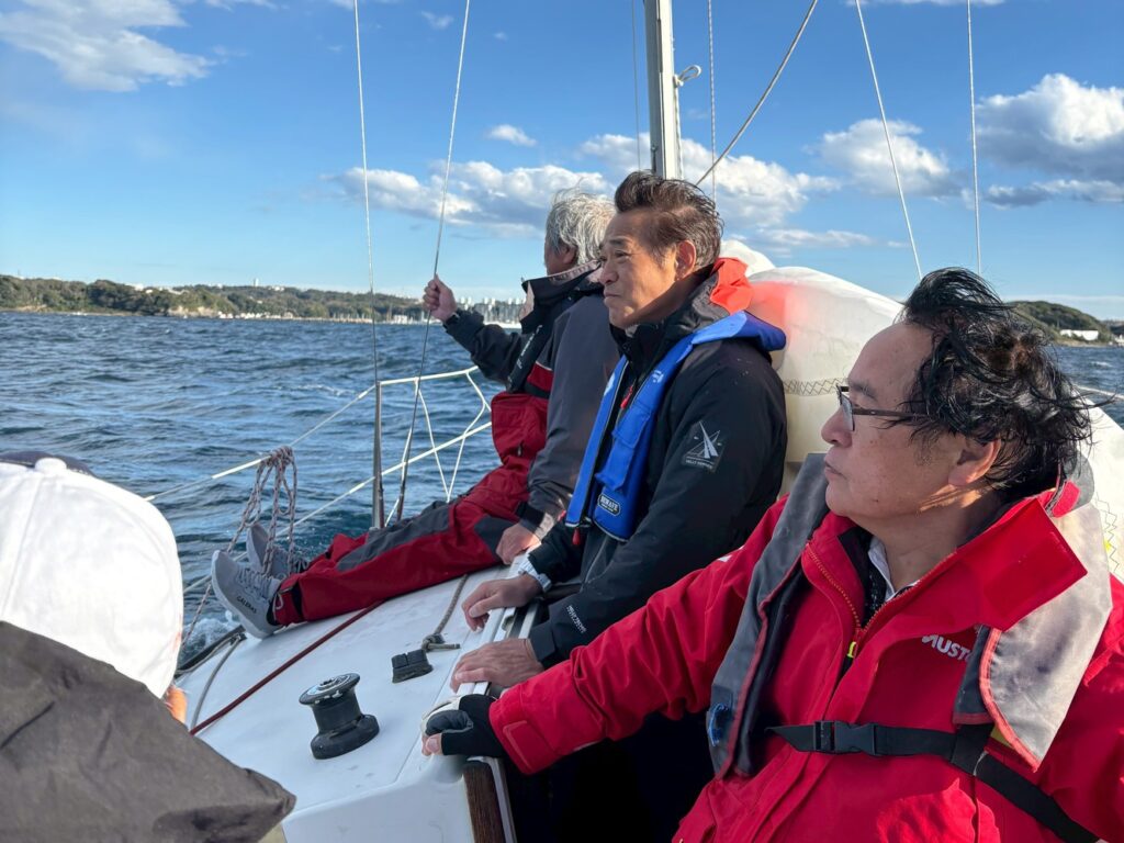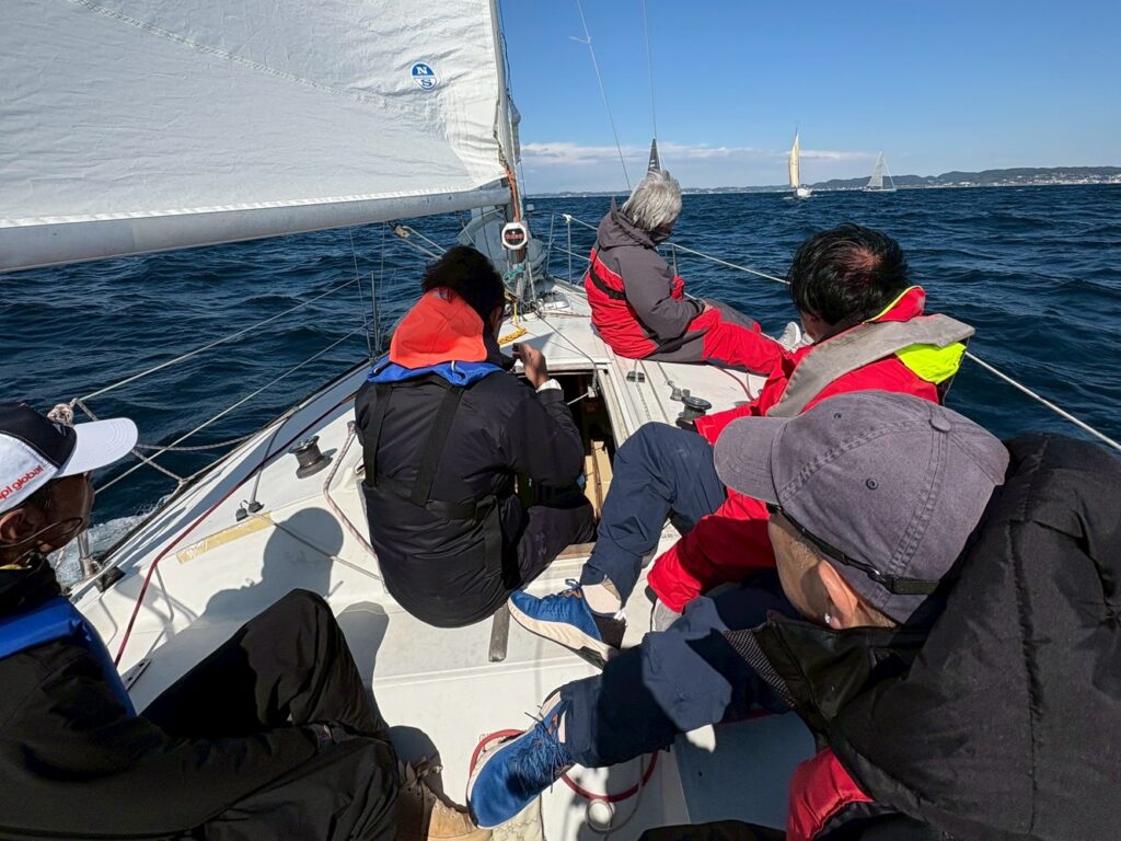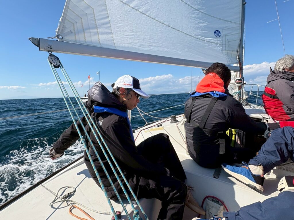 メインシートトリムを行きはを金子さん、帰りは水田が担当