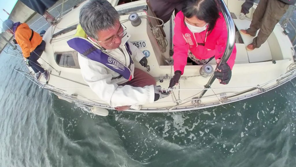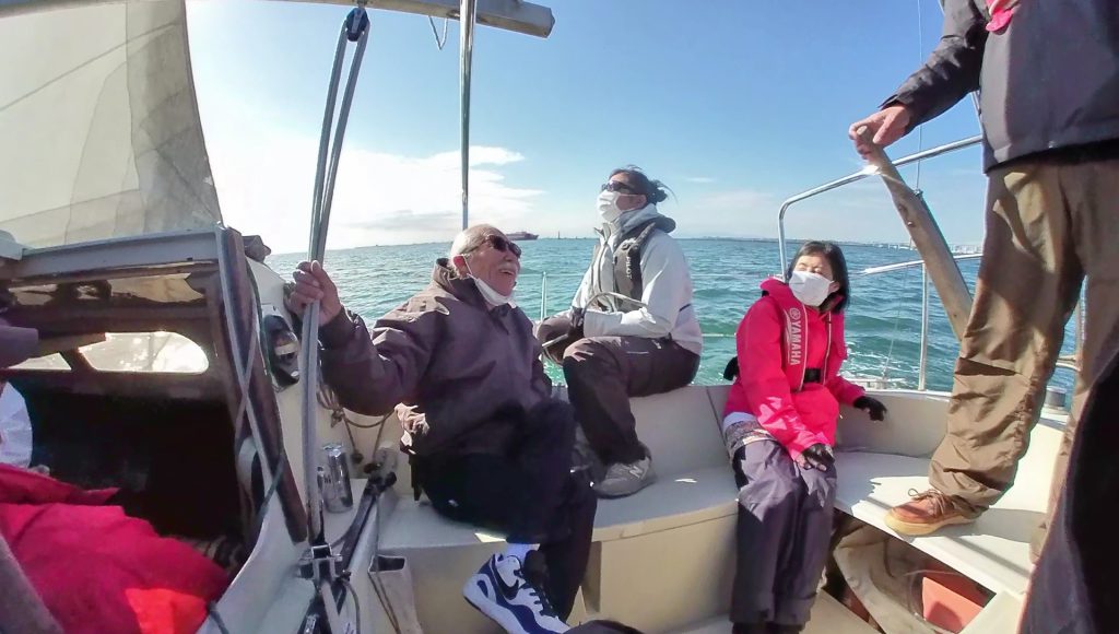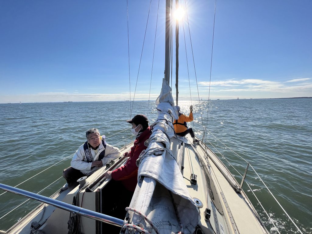 ジブは副田(そえだ)さん、メインは殿垣内(とのがいち)さん、スキッパーは橋本さん。