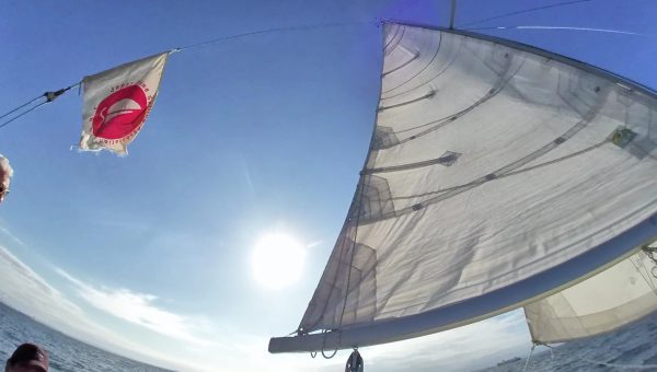 これはかなり楽しかった。ジブを引き込むと、メインシートにかかる重みが変わる。双方を出したり引いたりして、色々試してみていたのだが、両方にちょうど良い重みがかかるところがあり、このとき、風下側の船体が水を切るパシャパシャという音が、最も速くなる。