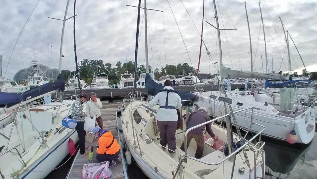 私は、雑誌KAJIの11月号に載っていた、八の字救助法ができるとメインシートを握りしめ、わくわくしたのだが、あっさりエンジン始動。一直線に落水者の元に向かい、谷下田さんが見事に網で救助した。