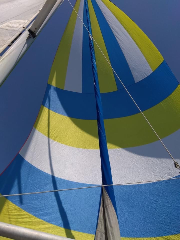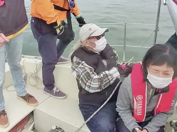 帰りには風が随分と弱くなっており、名畑さんの思いつきで、初挑戦のスピン張りを行いました。破損箇所もなく、これからの活躍が期待できそうでした。30分程してからは、機走でマリーナに戻りました。