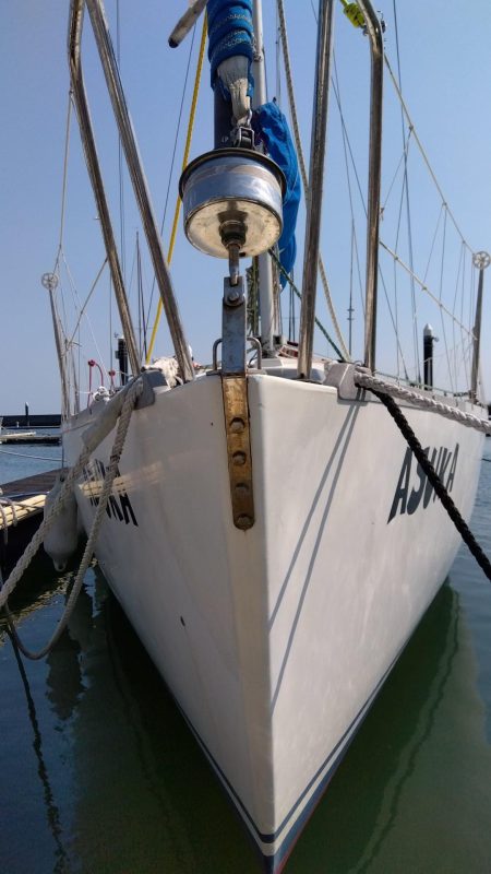 このジブカバーとも、あとひと月でおさらばとなる予定。6月の船底塗装時に、ジブセールと共に交換することとなる。