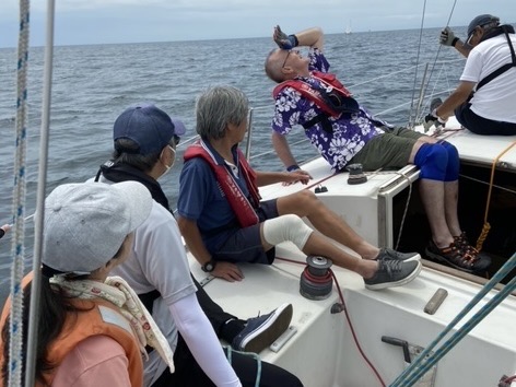 今回のクルーズは体験乗船の高橋さん、久しぶりに参加された菊池さんを迎え、ブラインド5人と大盛況。ブラインドが多いため、今回もブラインドを午前と、午後の2回に分けて活動を行いました。