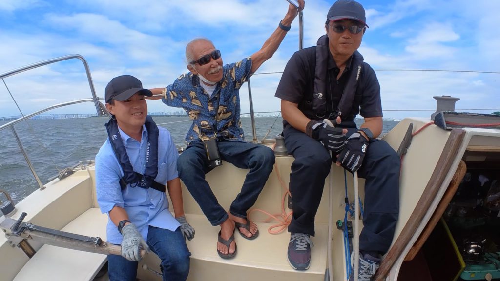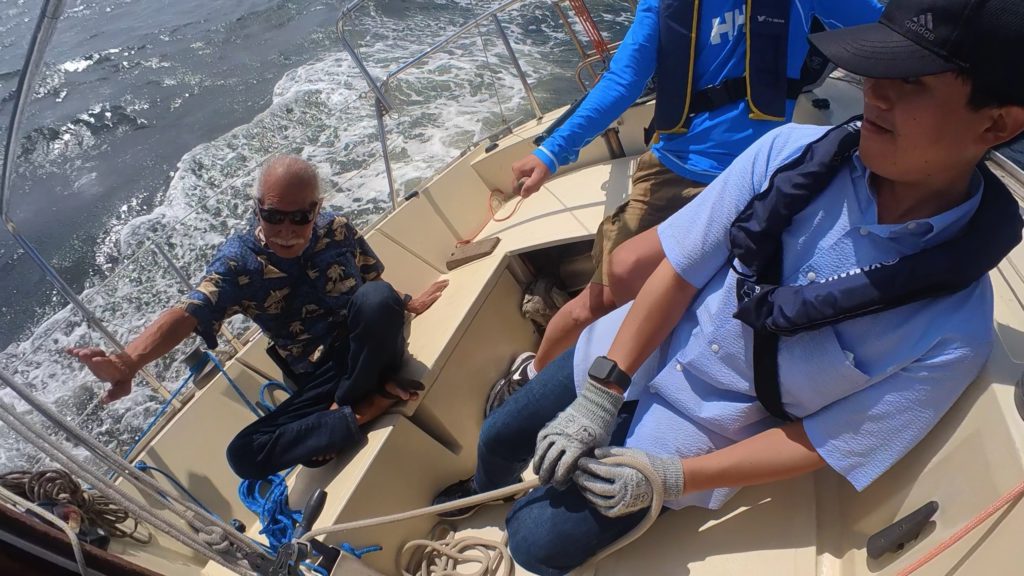 谷下田さんと一緒にいたおかげでこの日はVIP待遇!優雅なクルージングのスタート!と思ったら、最初に待っていたのは前回台風対策で外したジブセールを取り付ける作業!