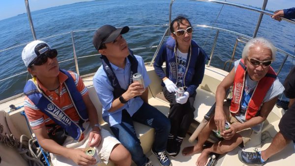 ここは、マリーナの建物近くのゲスト用ポンツーン!そして、しばらくするとあほうどりを操船して殿垣内さんと副田さんが迎えに来てくださいました。ありがとうございました!