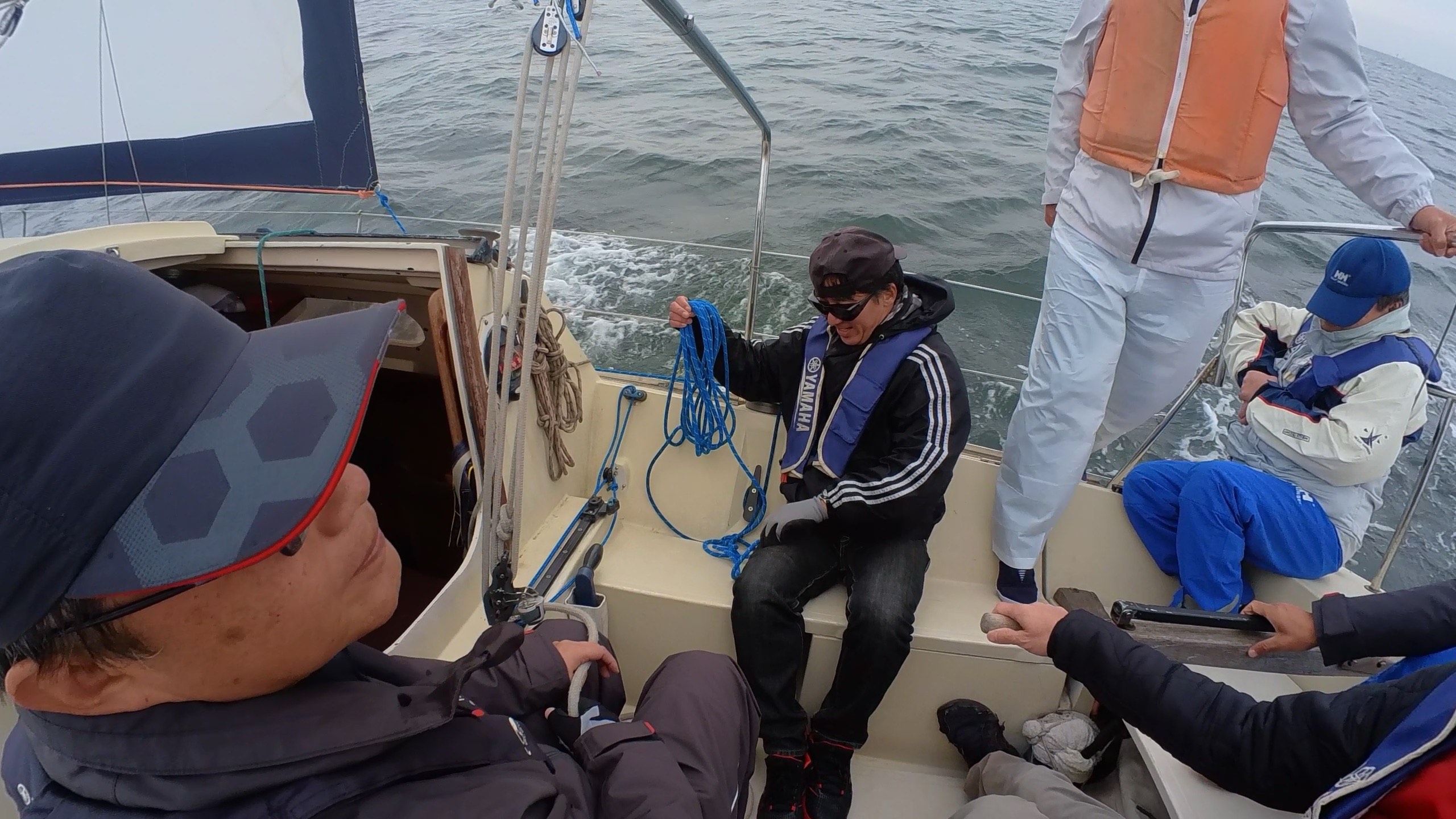 他、メインシートトリマーのこと、ロープワークなど教わる。