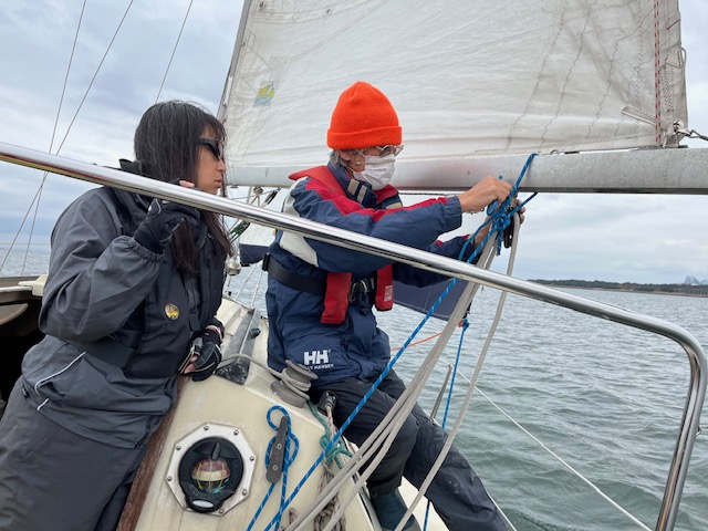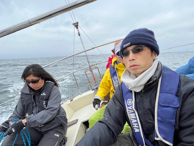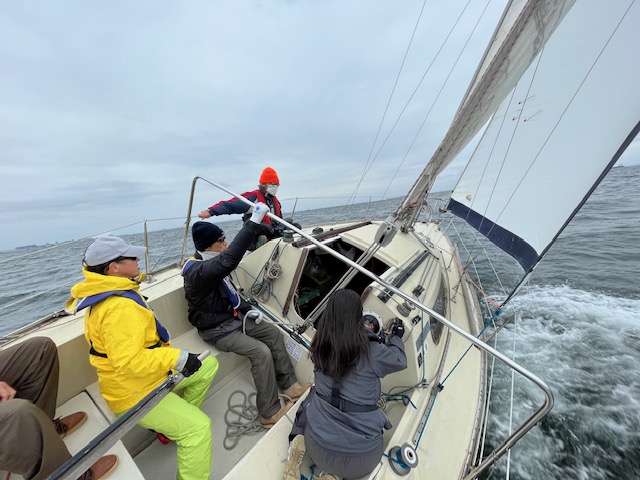 始め私はメインセイルトリマー。クローズではテンションをかけそれ以外では角度風速によって緩めていく?回数を重ね慣れるしかない。