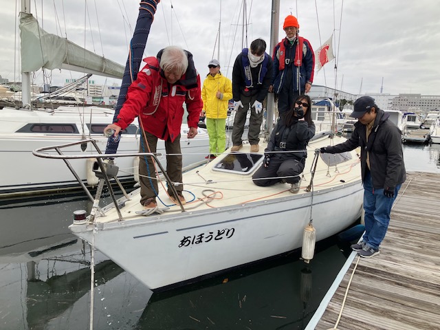 初乗り。日本酒を船首船尾、マストにささげ今年もお世話になりますとアホウドリに新年のご挨拶。