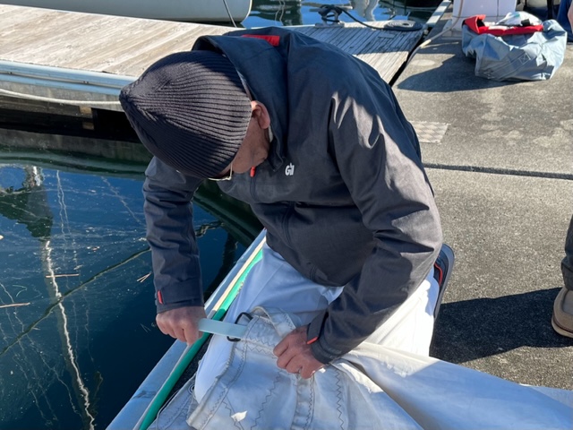 今回は早めに集合して、まずJSAF&JPSAから寄贈していただいたメインセールを児玉さんご指導のもと、皆で艤装。