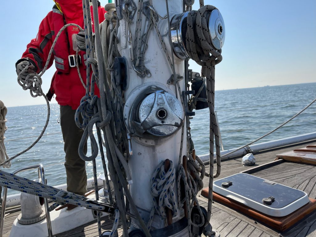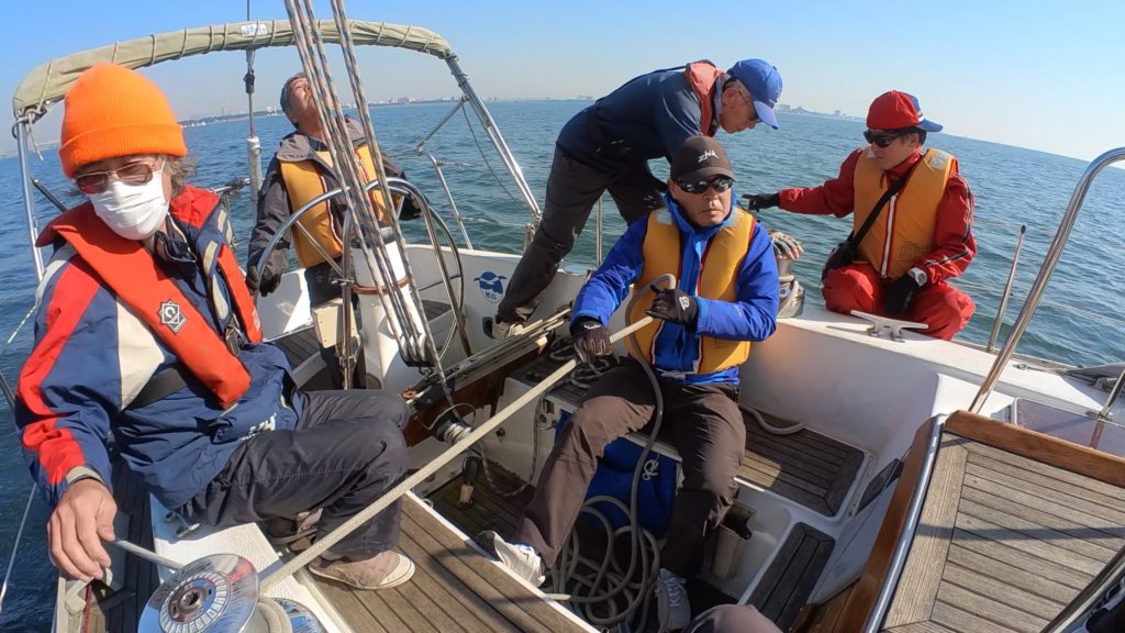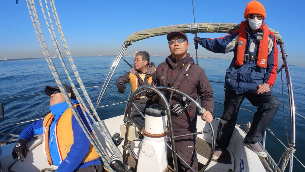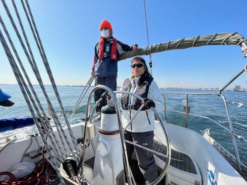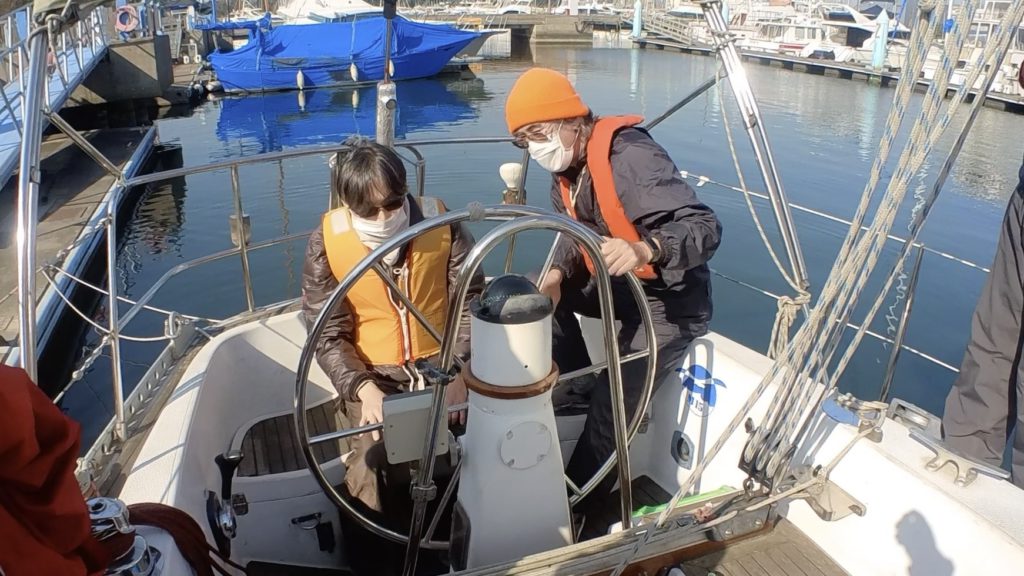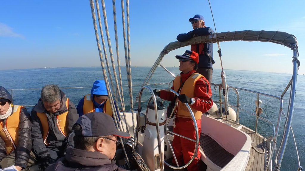 沖に出て古庄さんがラットを操作しました。そうなのです!今回はティラーではなくラットなのです。古庄さんはクルーの方から「操作が上手ですね」と褒められて「風に乗るのが得意なんです」とご満悦の様子でした。