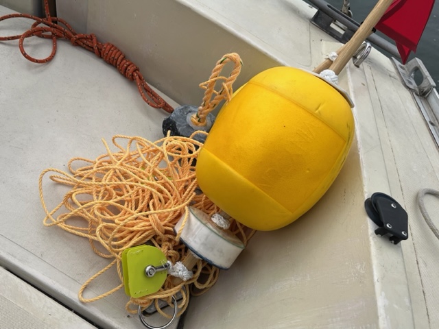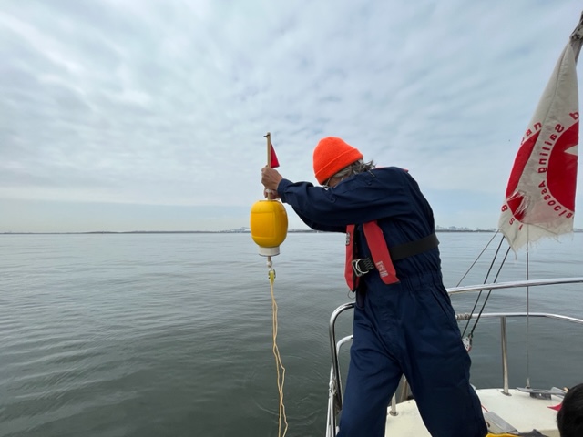 ・レース練習用にアンカーロープの長さ自動調節機能付き小型ブイを作成(旗は副田さん作成)