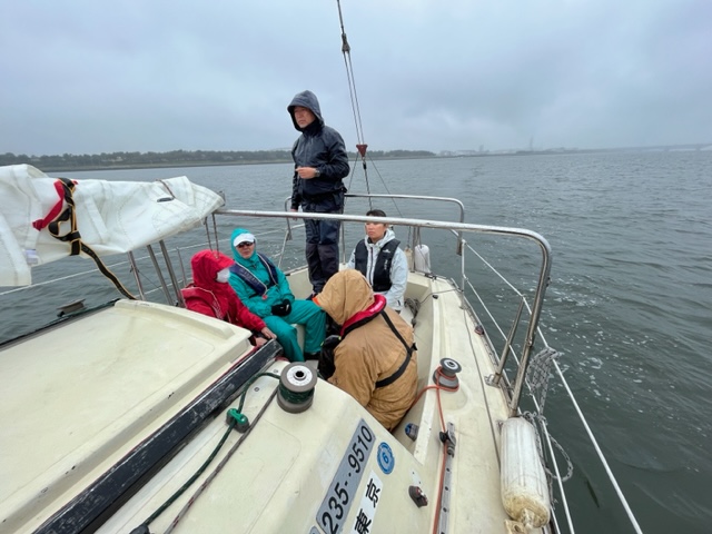 でも今、写真を確認したら、セールを上げる前までは、コックピットにいらっしゃることが判明。セールをあげた後の写真には、内村先生は写っていませんでした(笑)