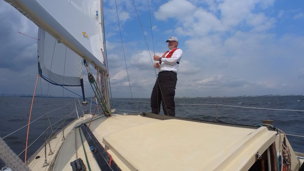 私はメインセールを操作。風が強いとこまめに調整が必要で指示いただきながら行う。