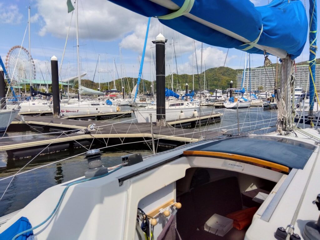 マリーナ近くのマンボー桟橋へ係留し、レストラン「ondina」でヨットを