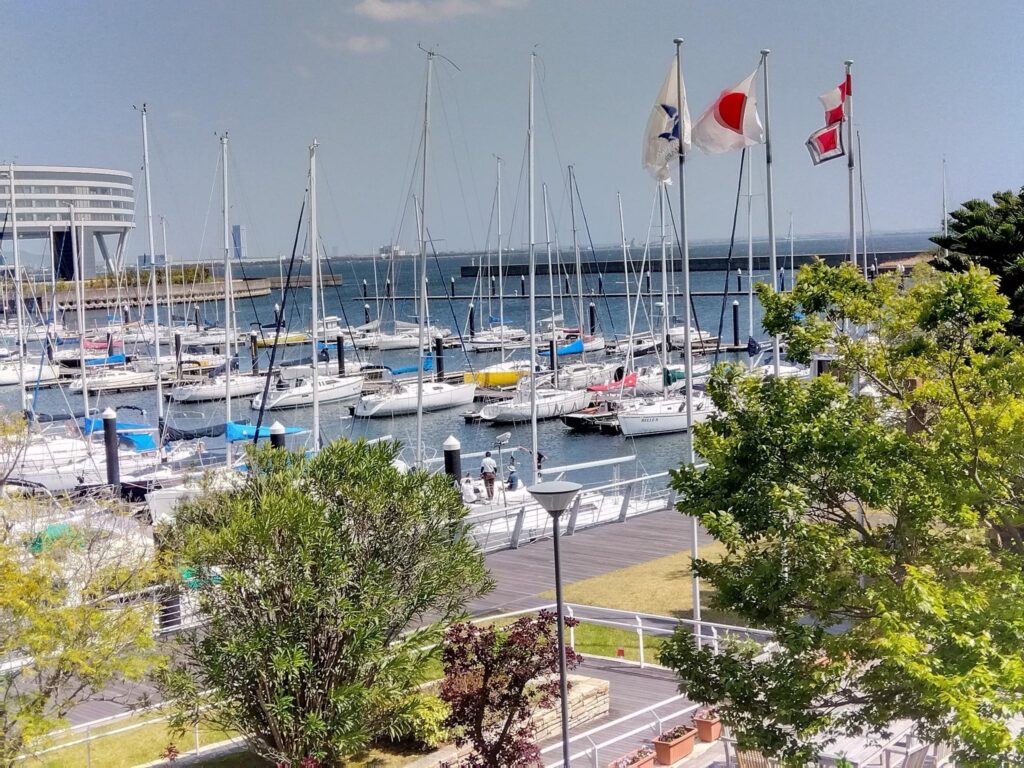 見ながらのランチクルージングを予定したが断念、マリーナ桟橋でランチ
