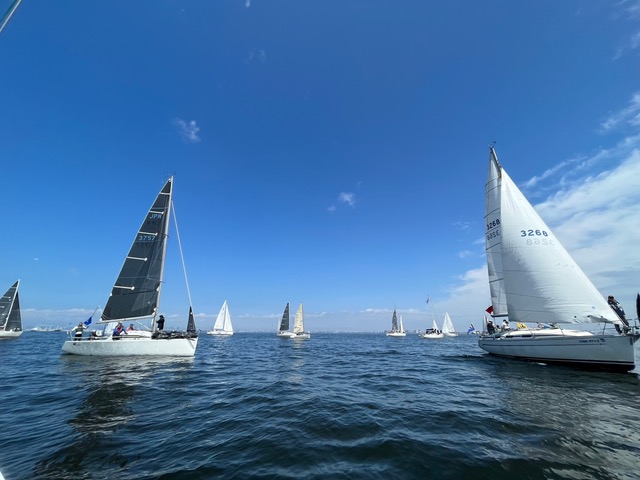 アウターマークを見つけ、続いて本部艇。ここがスタート地点のようです。前のヨットに並んでエントリー。5分前エンジンを切りいよいよスタートです。