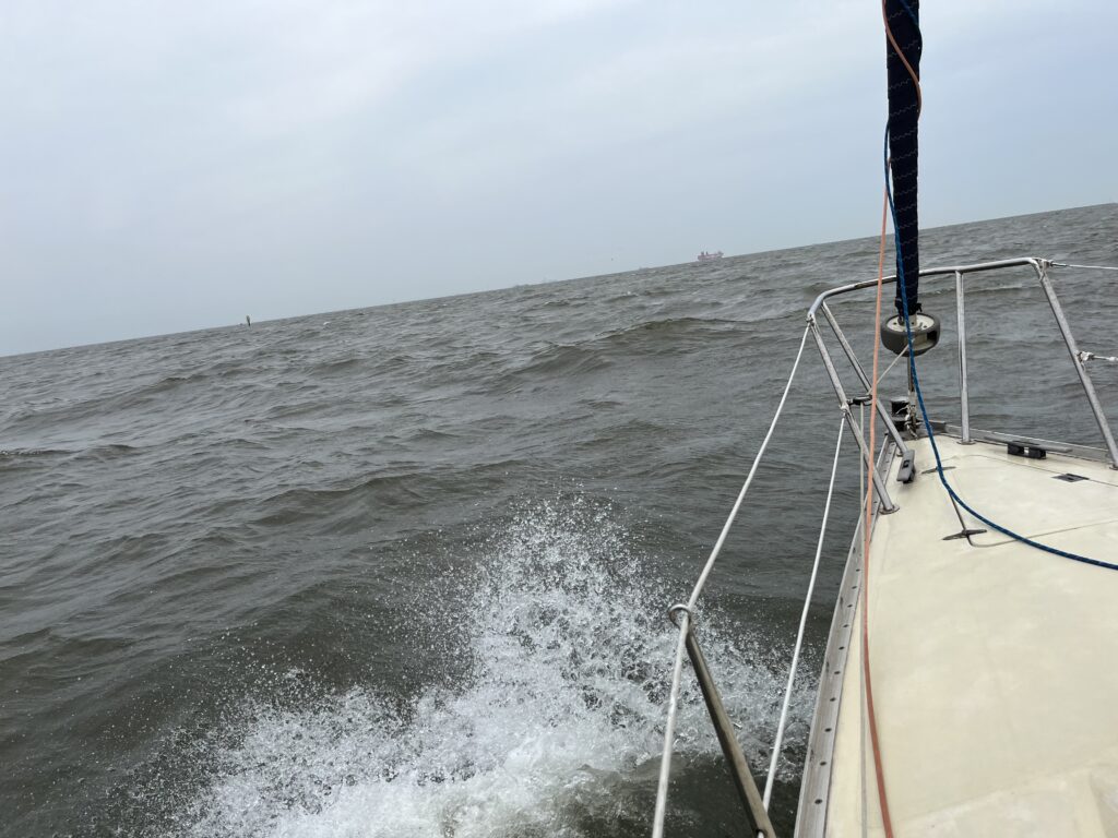 風が上がってきたので、途中ジブをフルで出していたのを再び3分の1に引き込む。帰路はクヲータリーからアビームだったので、比較的早く順調に戻ってくることが出来、15時30分着岸。