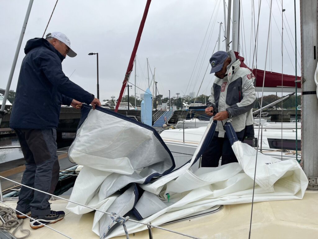 出港前にはフォアステイの修理やジブセールの艤装などもしつつ、通常のレース準備もしていたわけですが、堀江さんはあほうどりの中から、100グラム単位で降ろせそうなものを見つけては「これも降ろしておいて」とおっしゃっているので、私も降ろされてしまわぬよう、できるだけ堀江さんの視界にはいらないようにしていました。