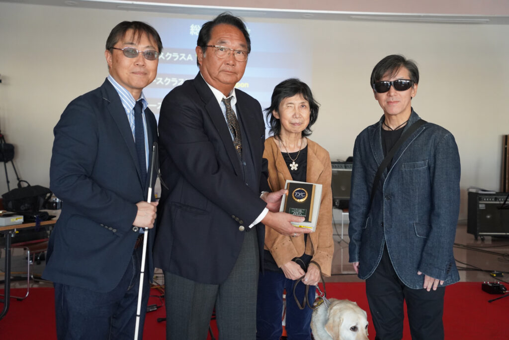 小倉さんとブリスに「行きましょう!」と声をかけ、小柴さんが小倉さんのガイドをしてくださって、とのがいちさんと佐藤さんでそのあとを追い、4人で表彰を受けました。私は、カメラマンで、なんとかベストショットを取れないか、あっちへ行ったりこっちへ行ったり。