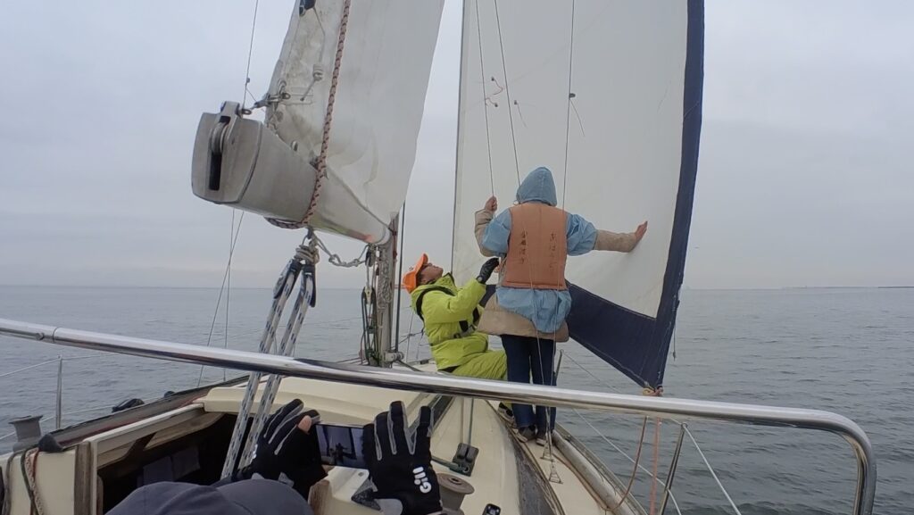 先に記しておくと、今回の体験者さんは大変セーリングのセンスがあり、事実上初めてなのに、風がどこから吹いているかを正確に捉え、まさかの安定したティラーコントロール。タックも完璧。