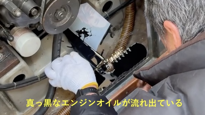 真っ黒なドロドロとしたオイルが次々と流れ出てきました。「あほうどりのお腹の中がキレイになって、次に走るときは気持ちがいいだろうなあ。」と思いました。