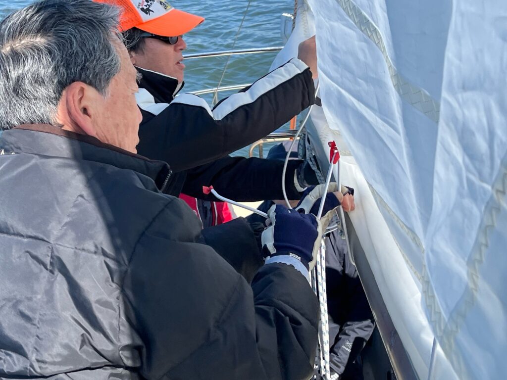 セールアップする前にリーフィング手順を確認したり、オリーブフックのリーフタイのつけ外しの練習をしたりしていたのでスムーズに作業ができた