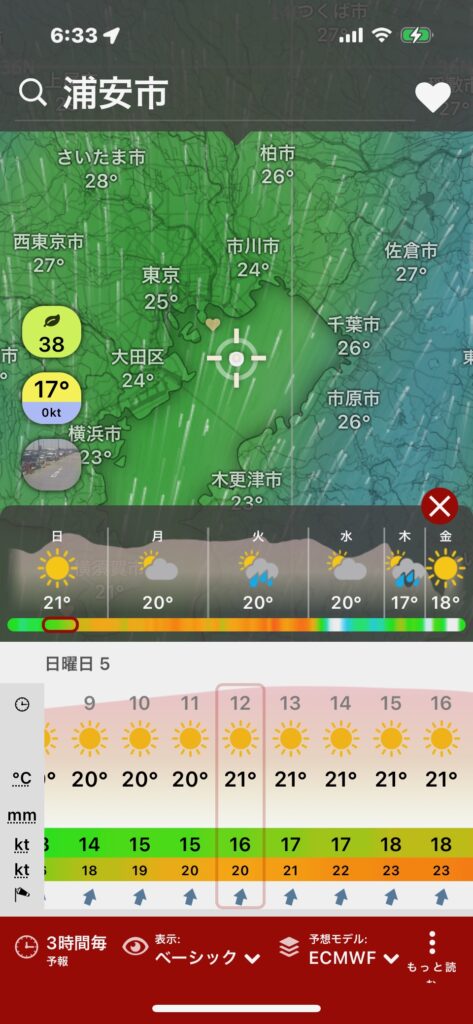 竹内さんが携帯とパソコンで気象情報を集めていました。予報では竹脇さんが言うとおり、関東地方では前線の影響が残り、北東の風が強く吹くとされていました。竹内さんは「地元の人が西がそれほどでもないと言っているのをどう見るか?」と渋い顔をさせていました。そして、出発をぎりぎりまで遅らせて、6時の NHKの天気予報まで待ちました。ですが、詳細な報道はありませんでした。