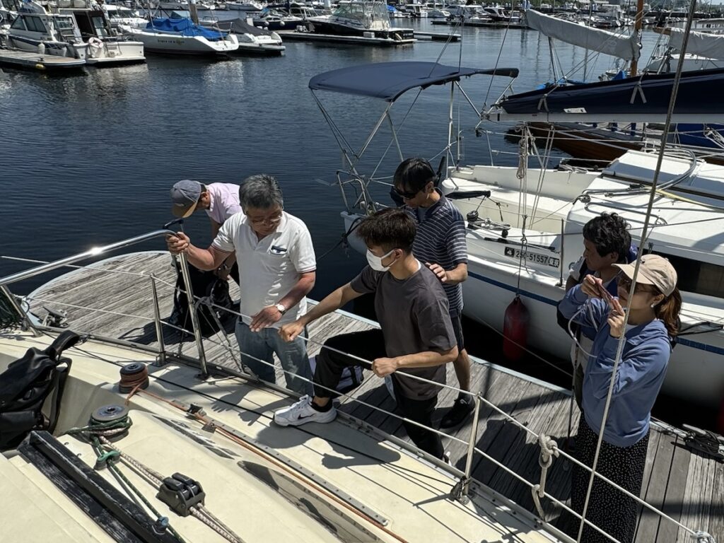落ちた瞬間は、落ちたと認識する間もなかったので、何が起きたのか分からないけど、水中にいるなあと。上がってきてから桟橋から落ちたんだなと、認識しました。桟橋上で、ある艇のメンバーがメンテナンスでお店を広げていて、通っていく場所のゆとりが人一人分しか歩けない程度になっていたらしく、そこを超えていくときに私が落ちたようです。そんなこと私は知らずまま、もう桟橋の広いところを歩いているとばかり、普通に大股ですたすたとサイテッドに着いて歩いていたのです。