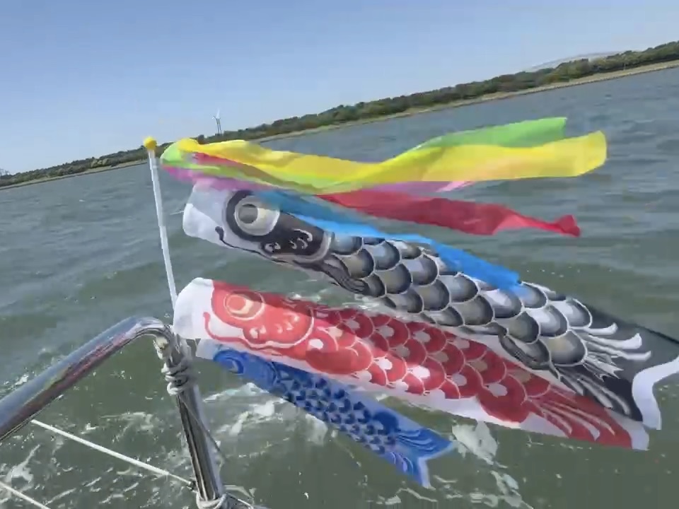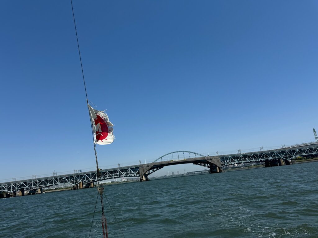 先ず、子供の日ということもあり、殿さんが百円ショップで買ってきた鯉のぼりをあほうどりのスタン側の手すりにくくりつけて、夢の島を出航。ーー鯉のぼりはその後、添田さんによってこいが料理されB旗に変身したようです。ーー京葉線の鉄橋を越えると、なかなかの強い風とうねり。先に出た艇が次々と戻ってきている。その様子を見て、風が強くて皆戻ってきているのかなああ、と。