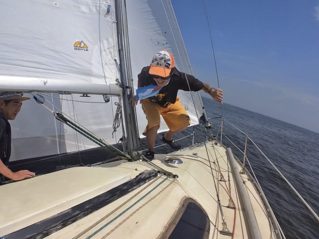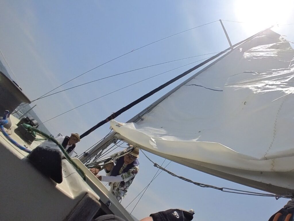 今回の体験者さんは高校生で、船に結構強く、まったく船酔いする様子もなかったため、ついつい、自分たちがしたいことをしてしまい、申し訳なく思っている。ただ、その日の夜、体験者さんと保護者のかたと、それぞれメールでご挨拶をさせていただいたところでは、船酔いはつらかったものの、今後も参加をされたいというご希望があるようで、嬉しい限り。最初からあれを経験して、まだヨットに乗りたいと思う人は、今後におおいにセーリングを楽しんでもらえるようになるのではないかと思う。