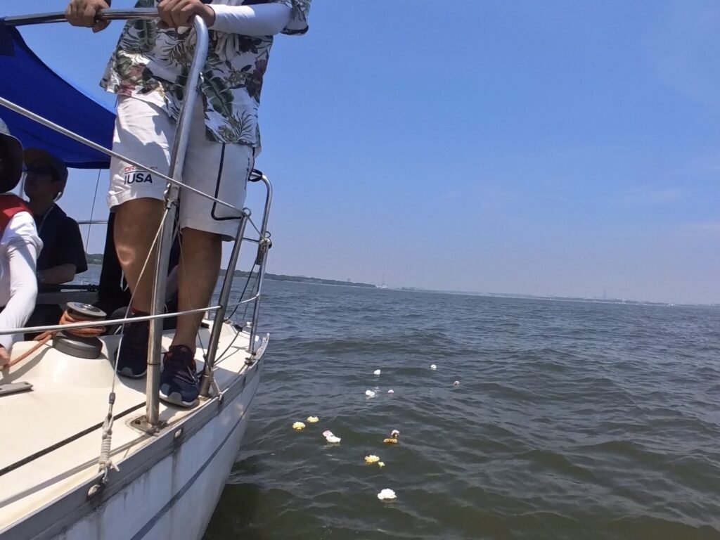 活動報告 JBSA東京 2024年7月7日 定期活動 竹内さんに献花と七夕セーリング
