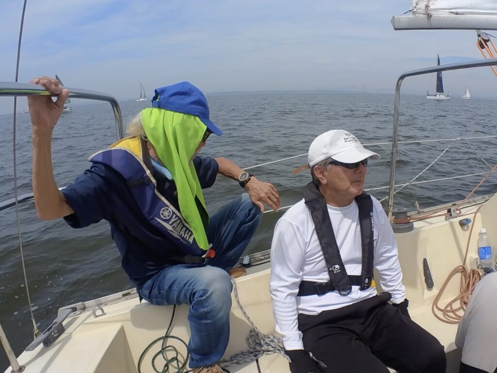 進めどすすめど上マークは見えず、レース艇船団の動向から想定して延々クローズドホールド、2時間を超えた頃やっと見えてきました上マーク!