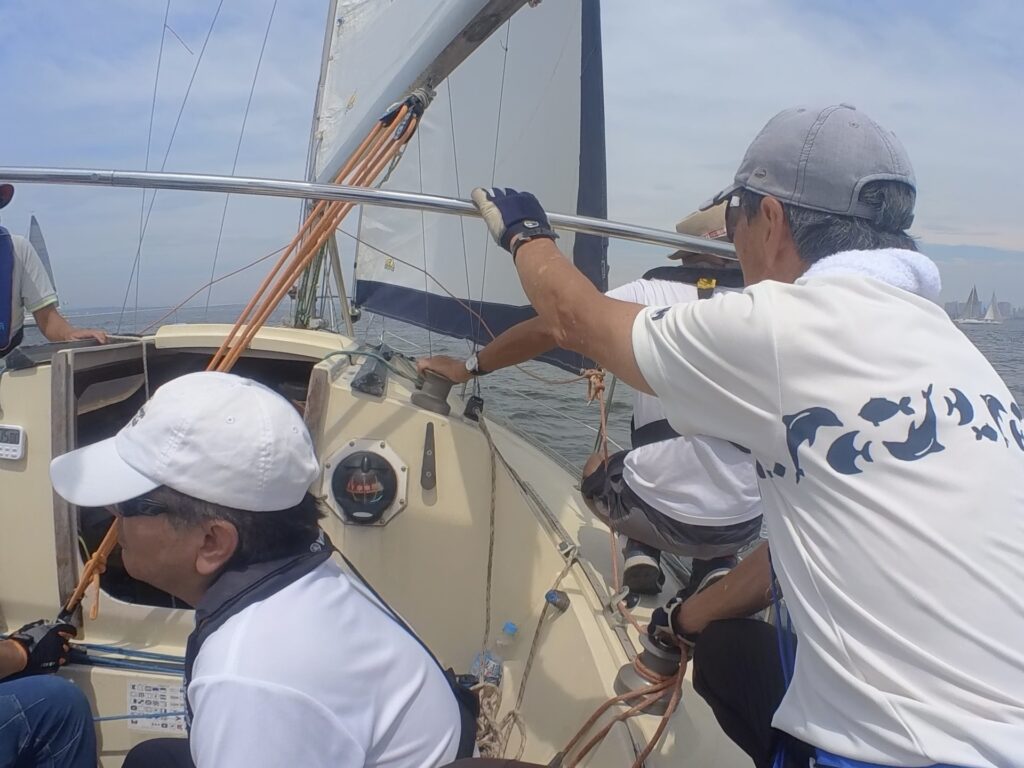 風は軽風。長い長いレースの始まり。しばらくしてタック。そしてまたタック。