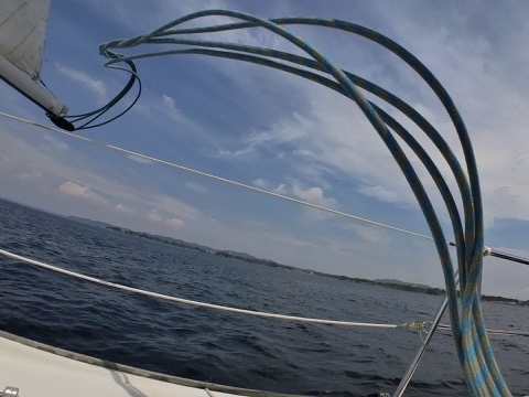 帰路、機走中にジブもメインもデッキで丸めてバッグに収納。その他の解装も完了。