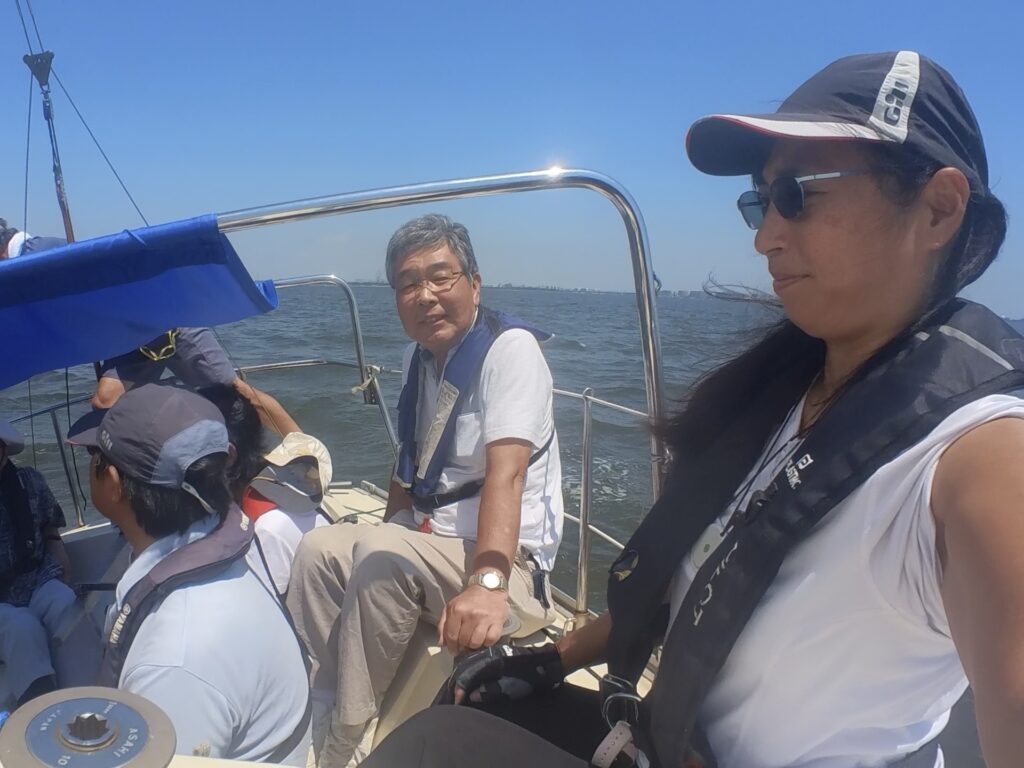 京王線人身事故により到着時間不明」と殿垣内さん&副田さんから連絡がありました。どうなることかと思っておりましたが、皆さんしっかり間に合って、古庄さんの車とピストンバスに分かれてマリーナへ向かいました。